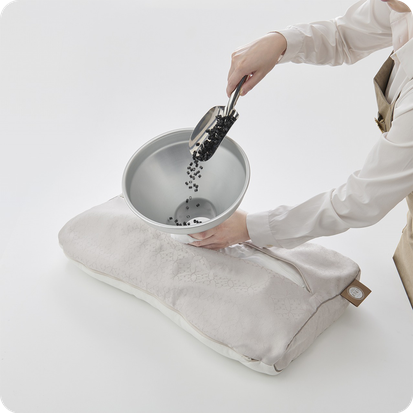 「寝心地はいかがですか?」「横になった時はいかがでしょう」たくさん試してみてください。できればお時間をかけてゆっくりお試しください。素材の量を変えて高さを調整してぴったりの枕をお作りしていきます。