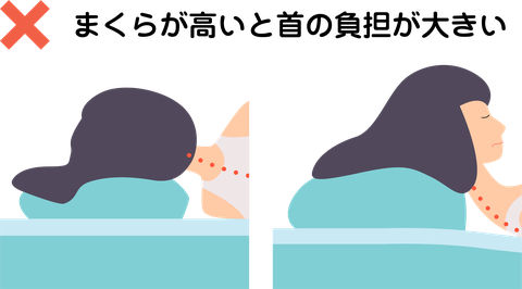 まくらが高すぎたり、低すぎたりすると、首や肩に余計な負担をかけてしまいます。