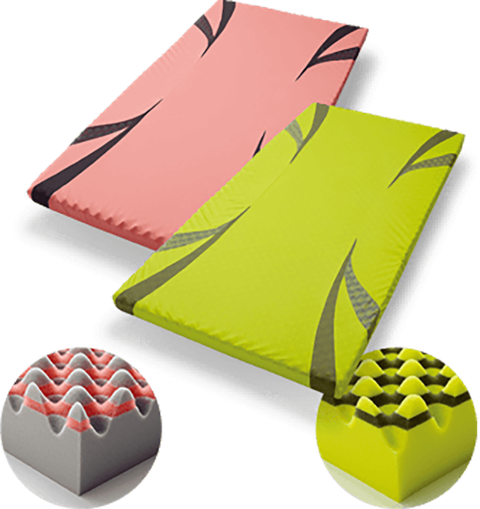 [エアーSI]マットレスは、日々のセルフケアのために開発された特殊立体クロススリット構造マットレス。横向き、仰向け、どちらの寝姿勢でも肉体をバランスよく支える快適な睡眠環境を実現。明日の活力を求める人のコンディショニングをサポートします。